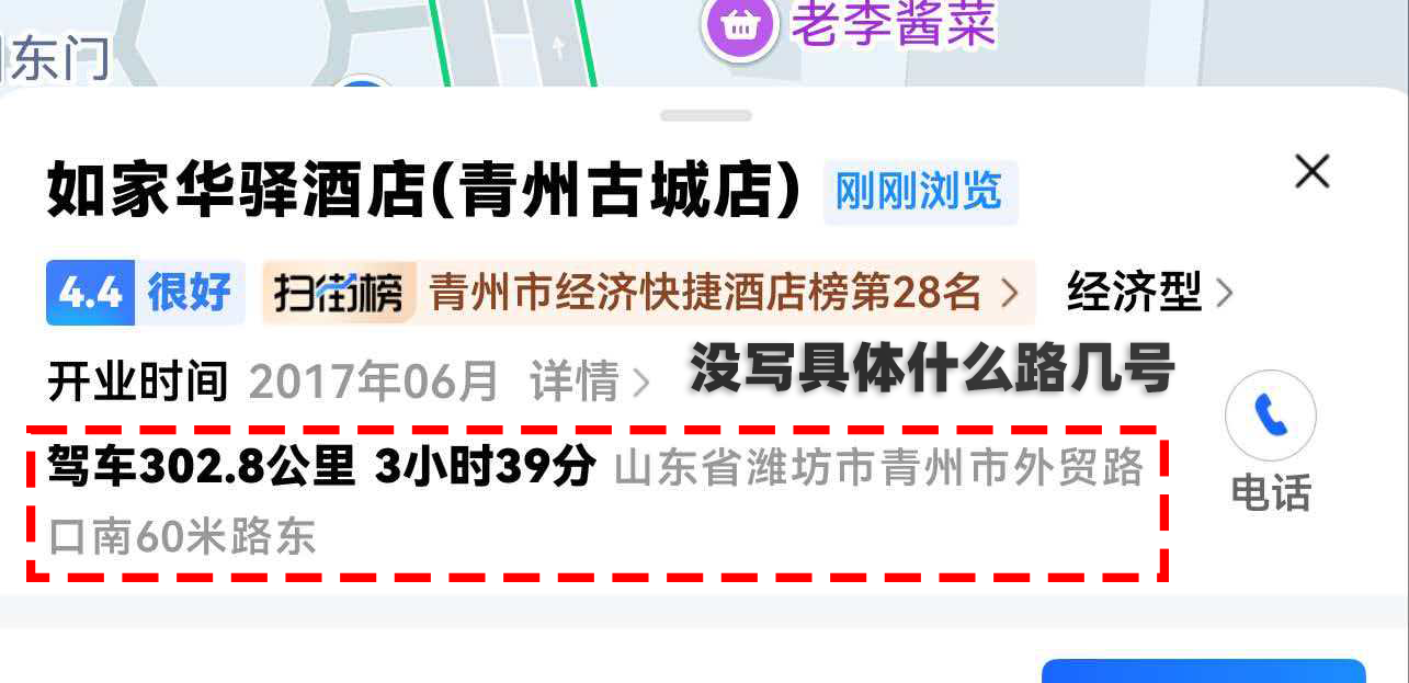 例如客户地址【山东省潍坊市青州市外贸路南 60 米路东如家华驿酒店】,地图上也没有写具体什么路几号应该怎么办呢?